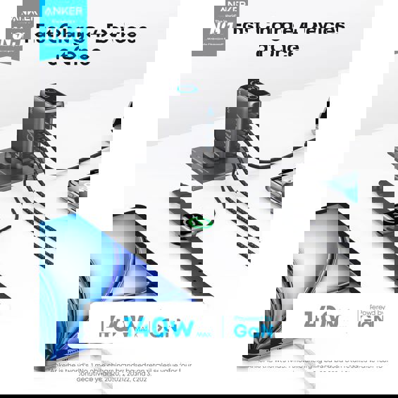 Istovremeno napajanje prijenosnih računala, tableta i telefona PowerIQ 3.0 tehnologija za optimizaciju punjenja Svaki USB-C podržava maksimalnih 100W MultiProtect i ActiveShield 3.0 pruža sigurnost, nadzirući temperaturu punjenja Priključci: 4x USB-C