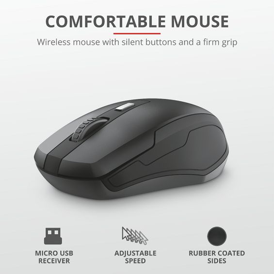 Set TRUST Ody 24164, Tipkovnica i Miš, Bežično, Silent, HR/SL, Black