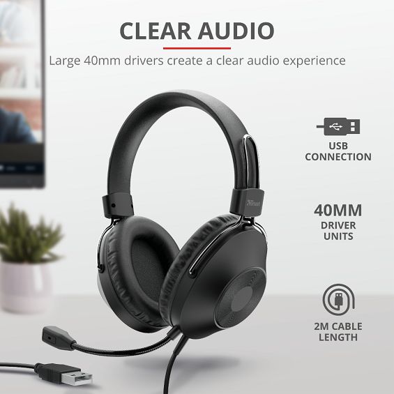 Slušalice TRUST Ozo 24132, Naglavne, PC, USB, Black