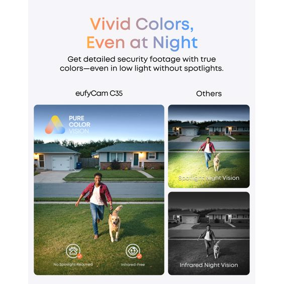 Quad HD rezolucija (2K, 2688 × 1520) + MaxColour Vision pruža jasan prikaz u boji čak i po vrlo slabom svjetlu Solarno napajanje (SolarPlus 2.0) omogućuje da kamera ostaje napajana i po oblačnom vremenu; podržava dodatni vanjski panel za više sunca D