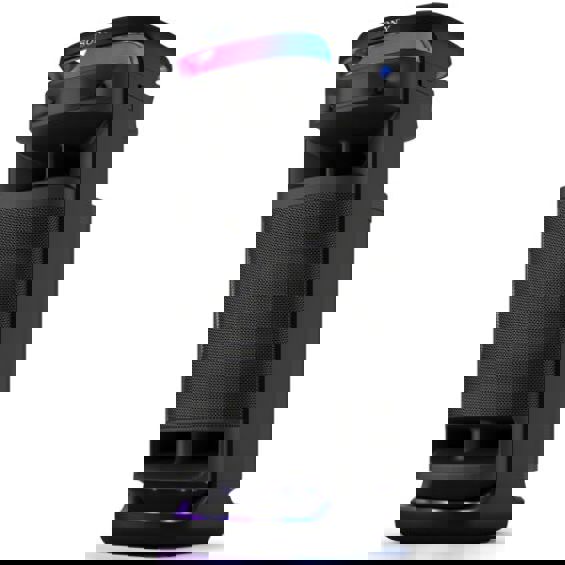 Značajke: Sinkronizirani light show Karaoke funkcija IPX4 otporan na prskanje Ulazi za mikrofon i gitaru Bluetooth streaming Uparite dva kompatibilna zvučnika bežično pomoću nove Bluetooth tehnologije Auracast™ Ugrađeni robusni kotačići i ručka za l